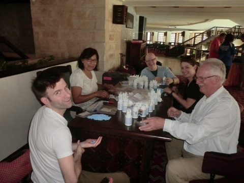 We started after breakfast with putting all 10,000 pill bottles in bags of 15 pills each! ok so it was not 10,000 but it was amazing how much stuff they had. Lets just say Bruce and I might have gotten hight off the kid vitamins! only kidding! (I was starting to get this cold that is set in now)