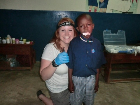 Then off to our first clinic at Bomoni! Talk about crazy organized but still feels crazy out of control….this team of doctors i am travailing with is amazing- they are all so nice and amazing at there job! I started just doing wait i do best- entertaining kids! Then moved in to learning how to take peoples blood presser. It was really fun- Rosie (awesome traveling bud- and awesome group of 2 leader! lol) asked if i wanted to learn. i said yes and jumped right in. After thinking wow that was really cool- how could this day be any better. I went to the dentist room- and my life will never be the same! Bruce asked me how i feel about pulling teeth- and before i knew what was going on I heard – put some gloves on and knew i was in for some amazing adventures! That i did- I pulled my fist tooth that day and had several to follow! It was so cool to see the kids in pain before they came in and then later in the day- they were happy bc they didn’t have that pain in there mouth! First YES- God- check!