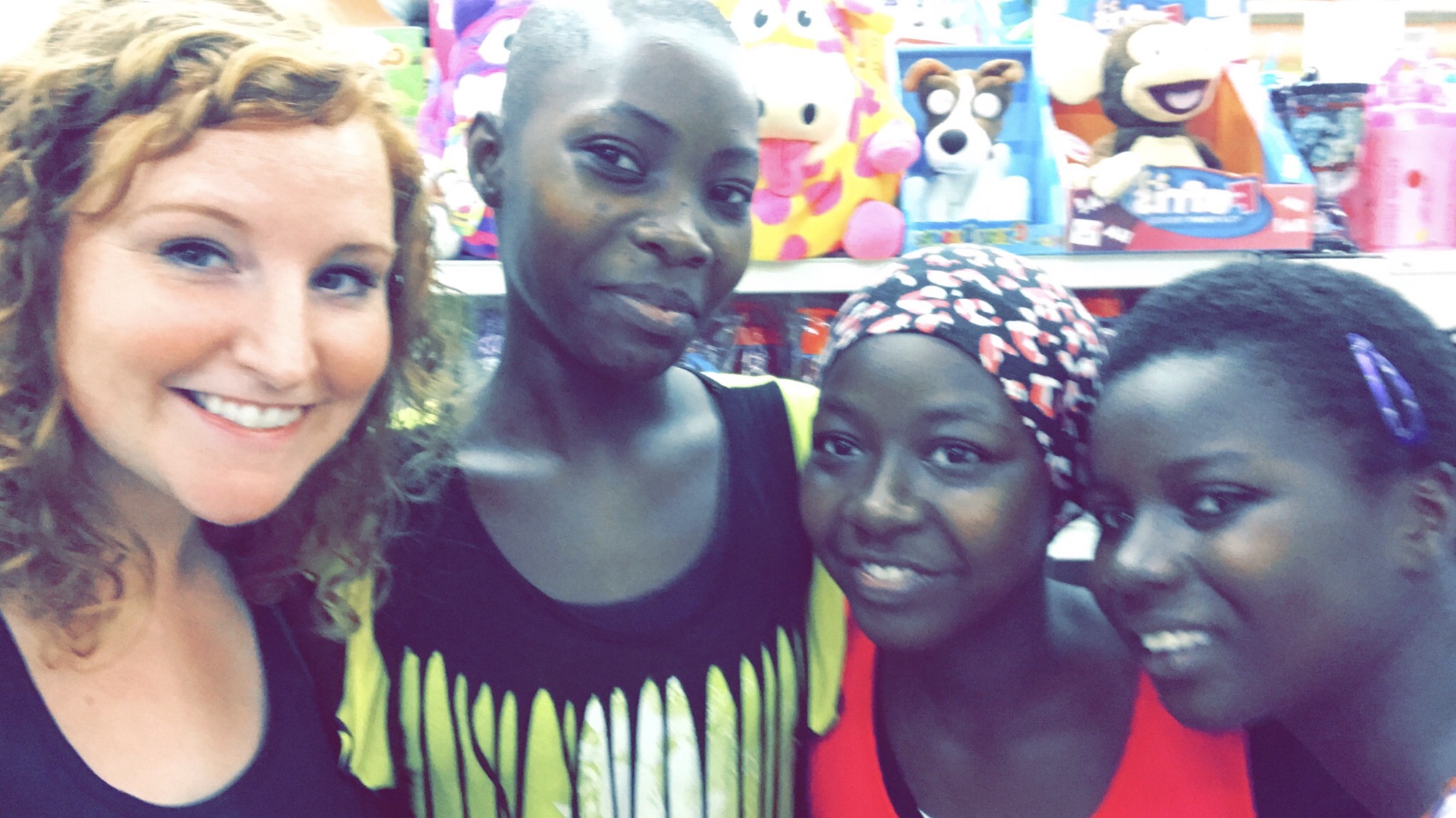 First we went to the escalators and run them up to the second floor but two of my girls had never been on an escalator before and I thought one of them wasn’t gonna make it till we got to the top! We got on one step apart and she ended on top of me on my step I thought I was gonna be holding her in my lap!! For real! The next thing we did was head to the bathroom. You have to remember that these kids are used to going to the bathroom over a hole in the ground. So when we got to the door they just stopped and stood there and I said oh we’re going in this one and I walk through the girls door and then all of a sudden I turned around to make sure they were behind me and one of the girls had gone in to the men’s side so I quick grabbed her out and said these aren’t like the normal toilets you’re used to there’s more than one toilet in here. So we proceeded in and I had to show them how to use the toilet and then also washing their hands and where the soap was. They had an air dryer in there and one of my girls was so scared of it she wouldn’t even put her hands under it. She tried a few times and just couldn’t. It was so cute! Then off we want to continue our adventure wandering through a bunch of different shops and then asking a lot of questions about how things work or what things were for. It was a lot of fun!