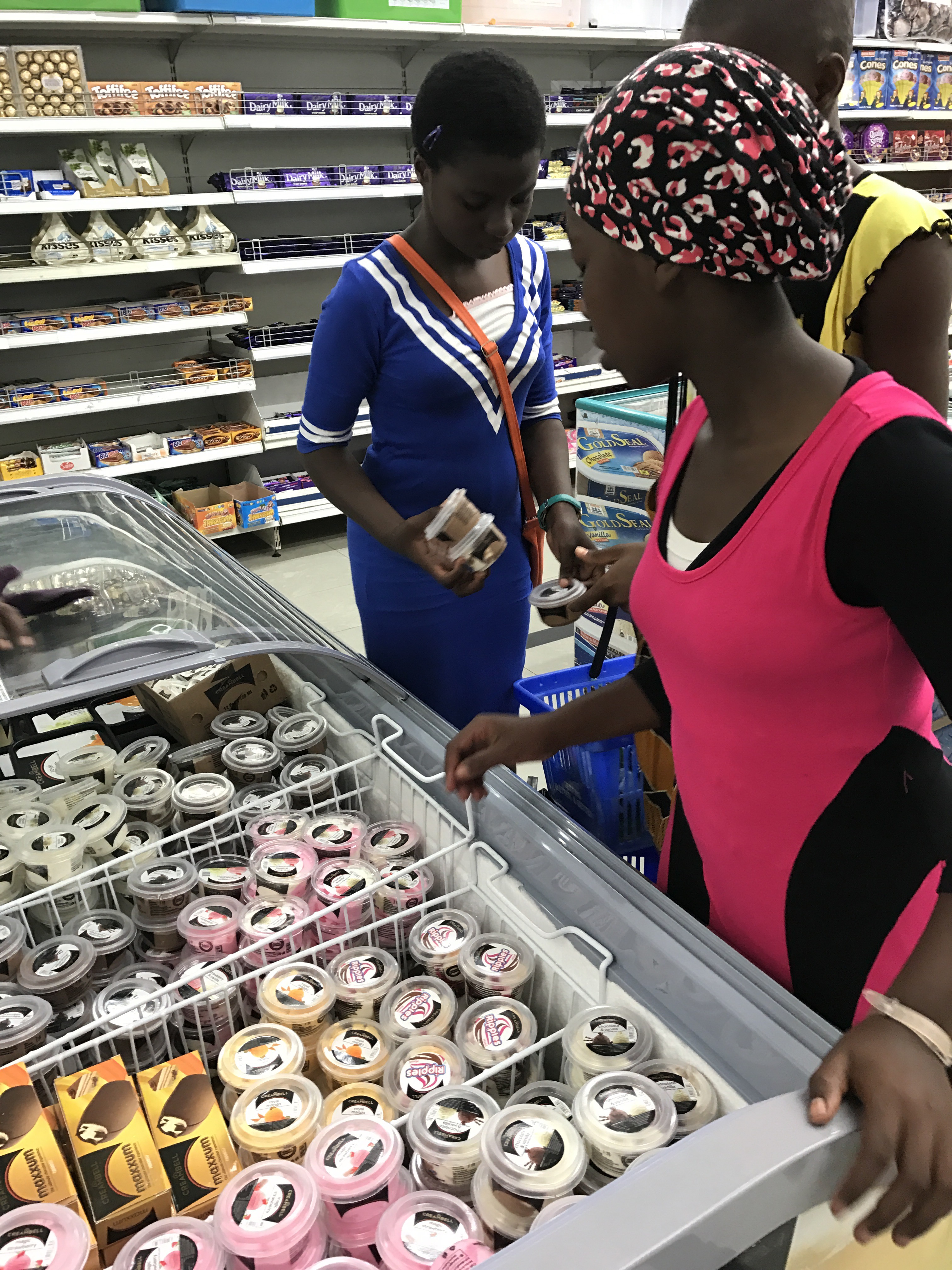 It was fun teaching the girls how to open the ice cream freezer.