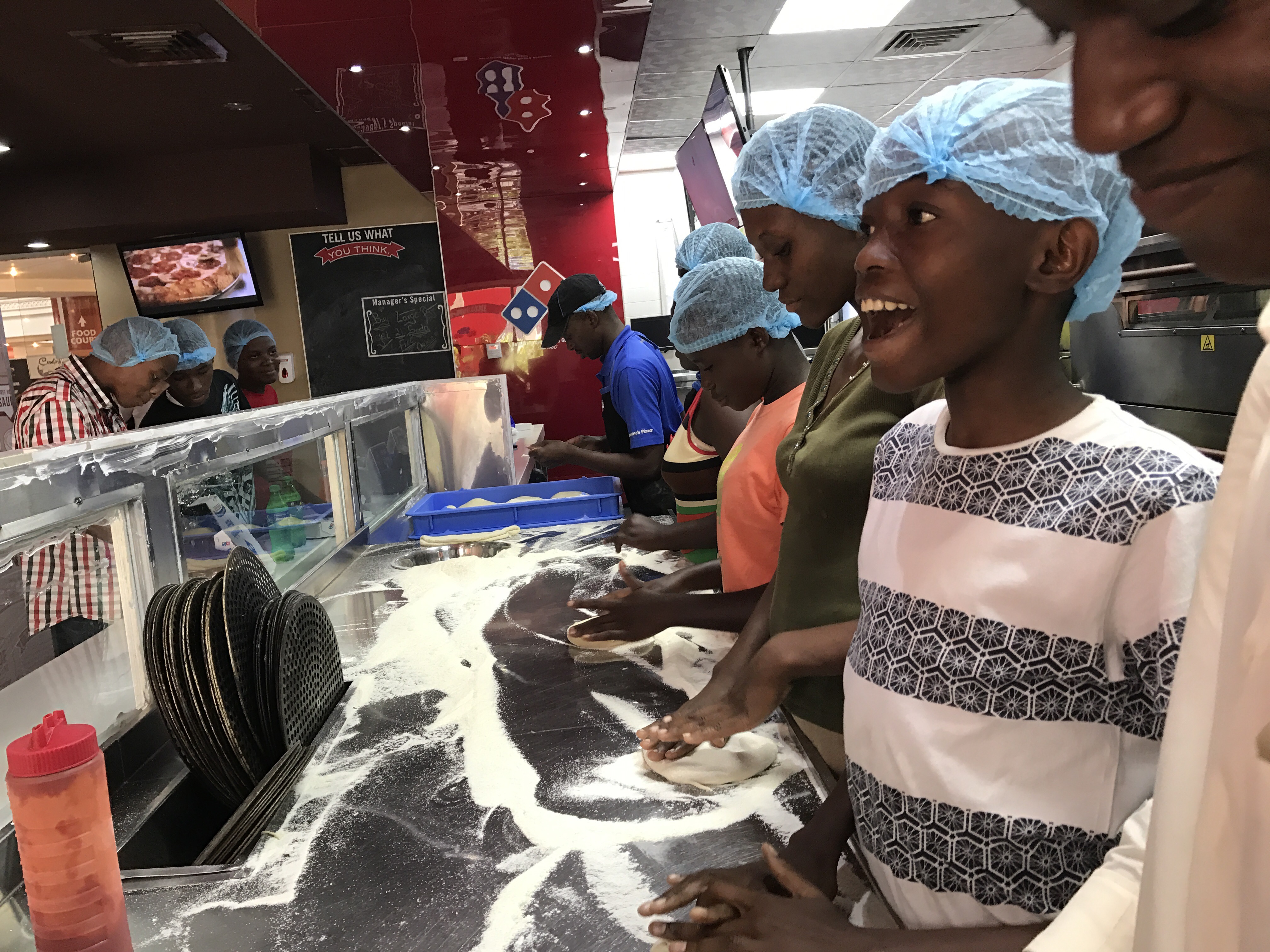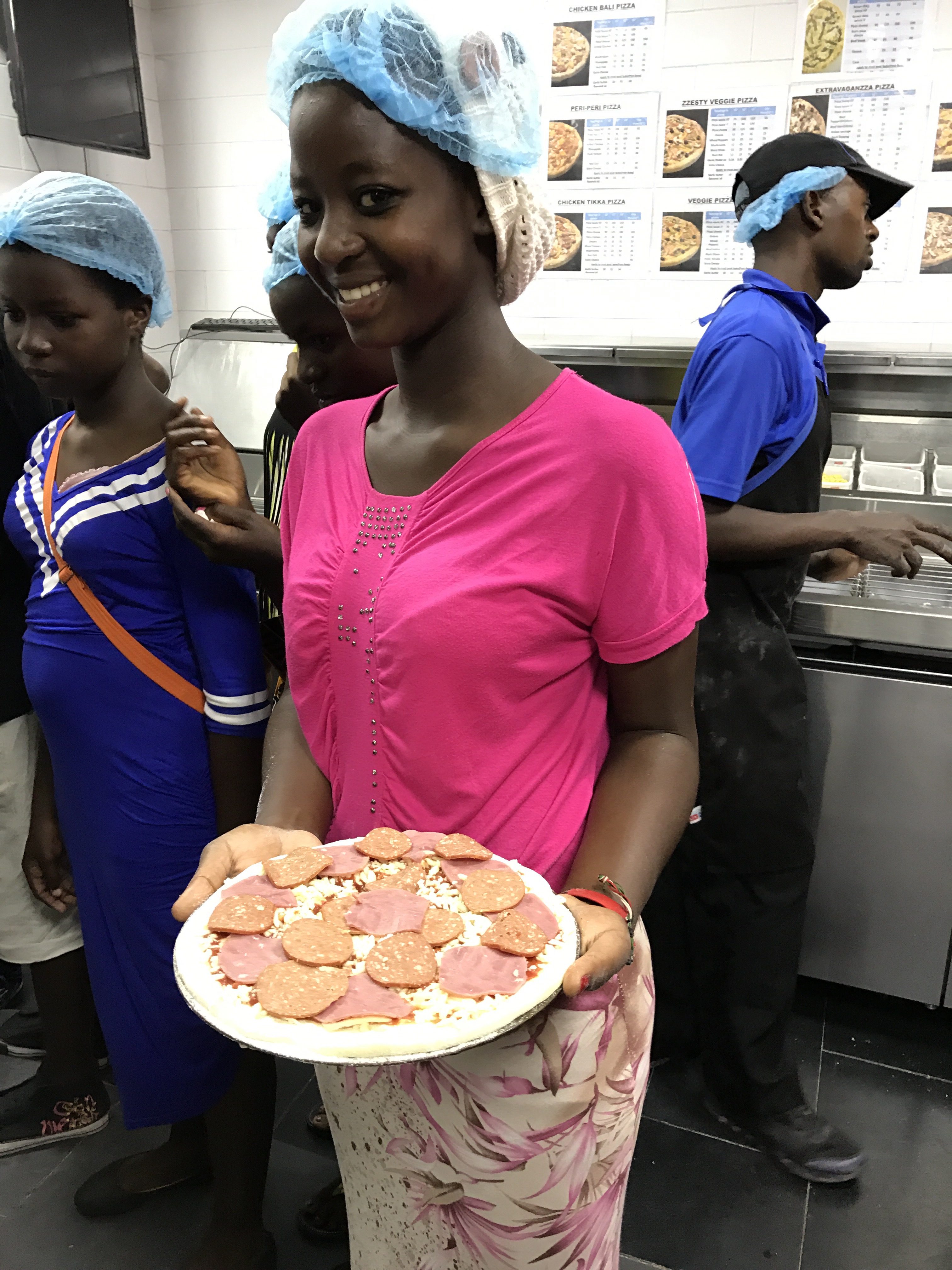 Today we set out to take the Vipingo graduates on a tour of the high school (most of them will be attending in just over a week), shopping and to make there own pizza’s at dominos sounds like a simple normal day right?!? Yeah not so much. The students really enjoyed seeing the high school and getting to see some friends. I have to say it was nice getting to see our friends that had graduate last year and are now form 2 students (they call the different classes “form” not freshman and so on.) After that we were off to City Mall! The students didn’t know that due to there performance on there KCPE (the test they have to pass to get into high school) exam we were going to reword them for getting a higher score then last years class’s they were getting a little spending money to spend on something nice for themselves.